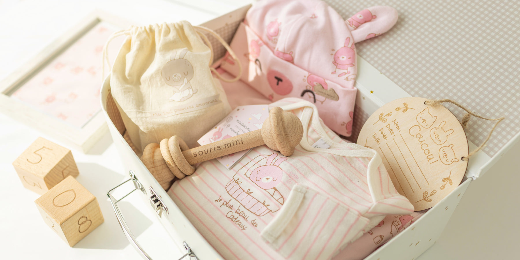Nos coffrets cadeaux sont remplis de petites attentions exclusives, soigneusement sélectionnées pour plaire autant aux parents qu’au nouveau-né.