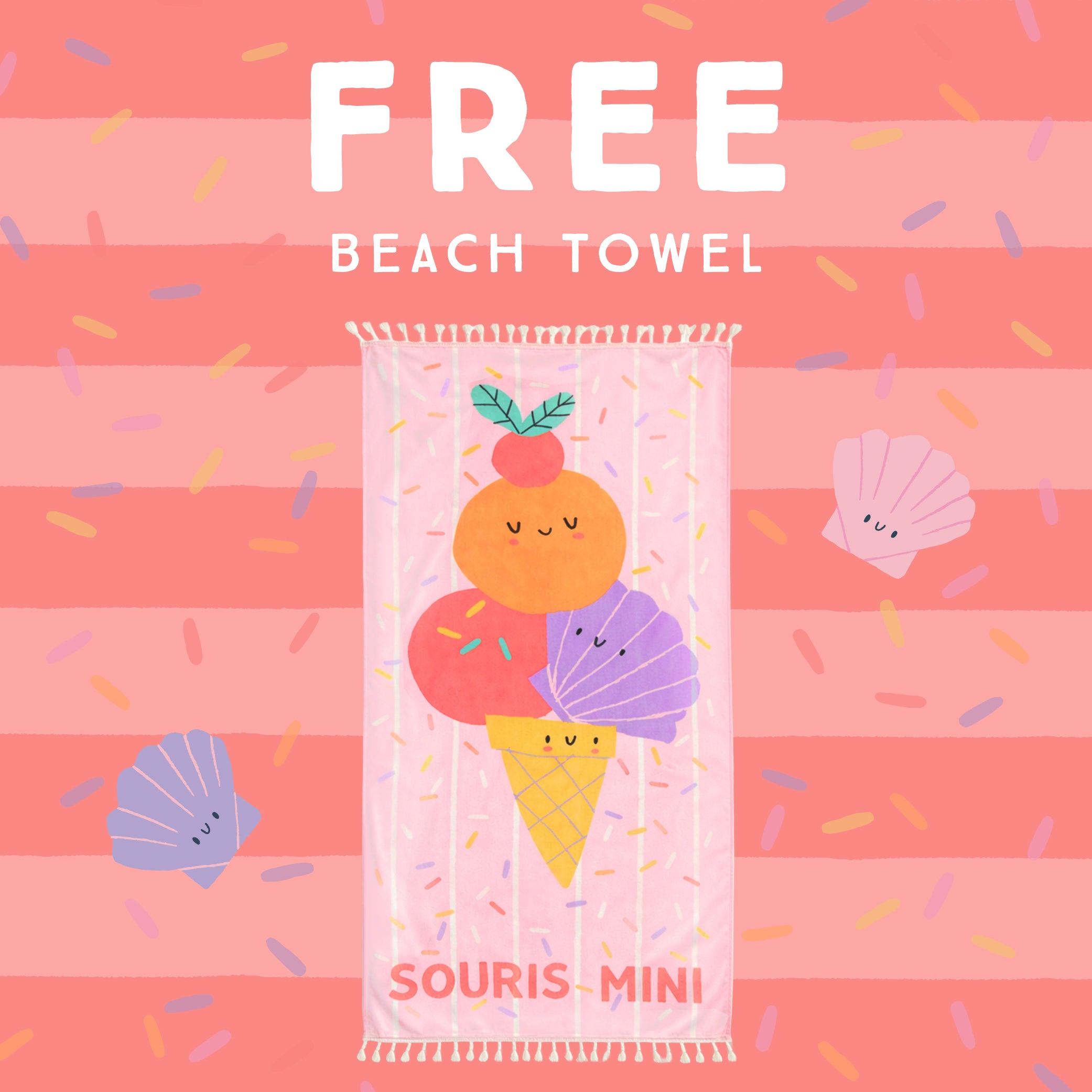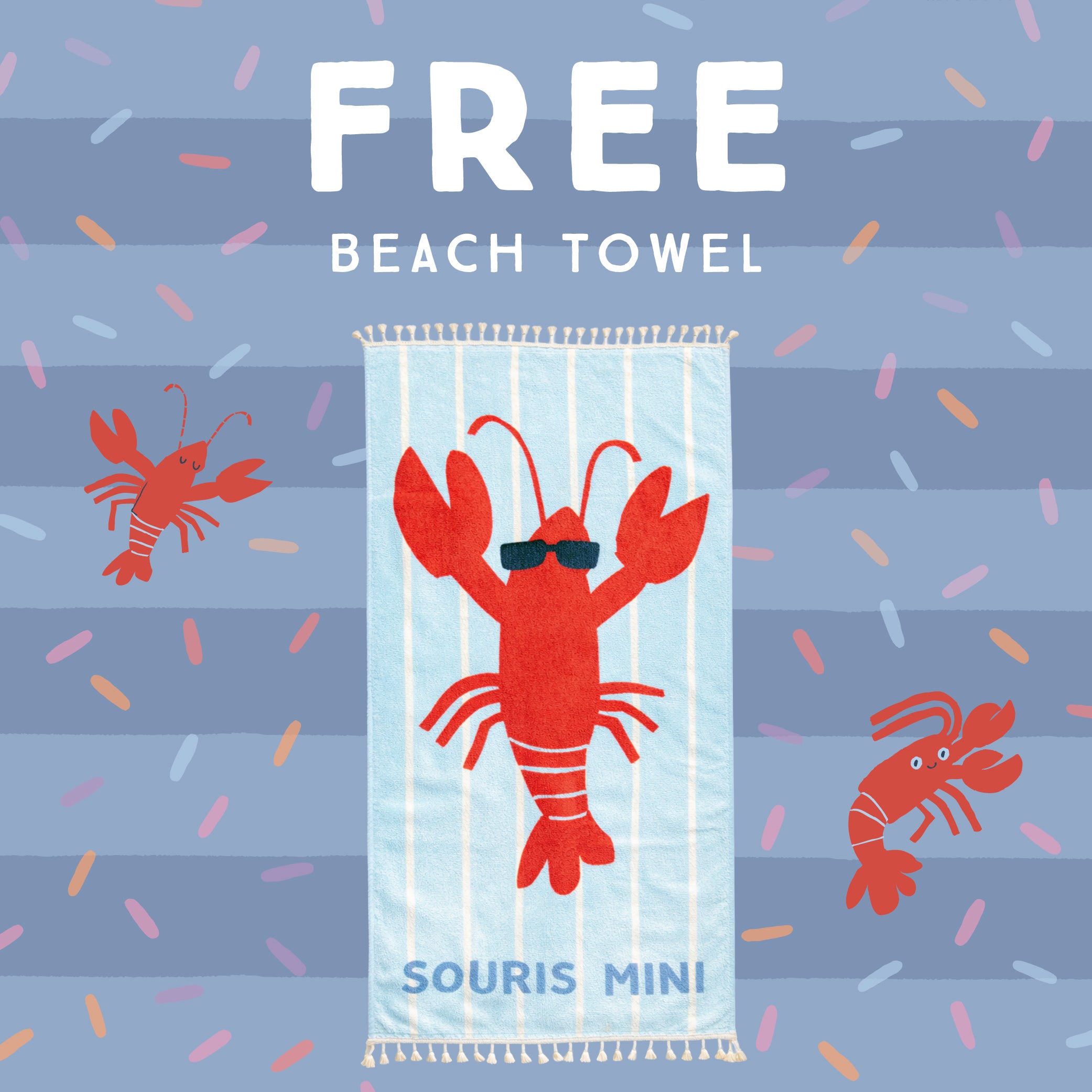 Get your FREE beach towel with every $85 swimwear purchase.