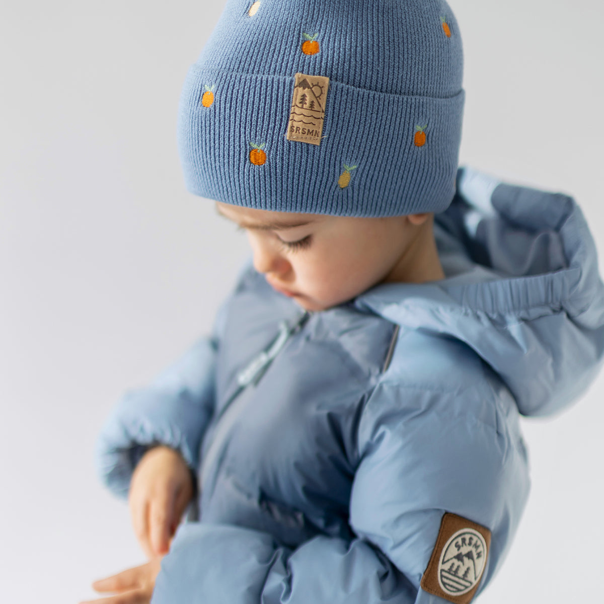 Tuque de maille bleue avec motifs de fruits brodés avec pompon. Composée de coton de grande qualité qui offre une douceur pour la peau sensible de votre mini. Les cordons de serrage permettent à la tuque de bien rester en place ainsi qu’un ajustement adéquat.S’agence à tous les manteaux de la saison grâce à sa couleur neutre et intemporelle.-Maille douce, chaude et respirante-Cordons de serrage-Pompon-Logo à l’avant