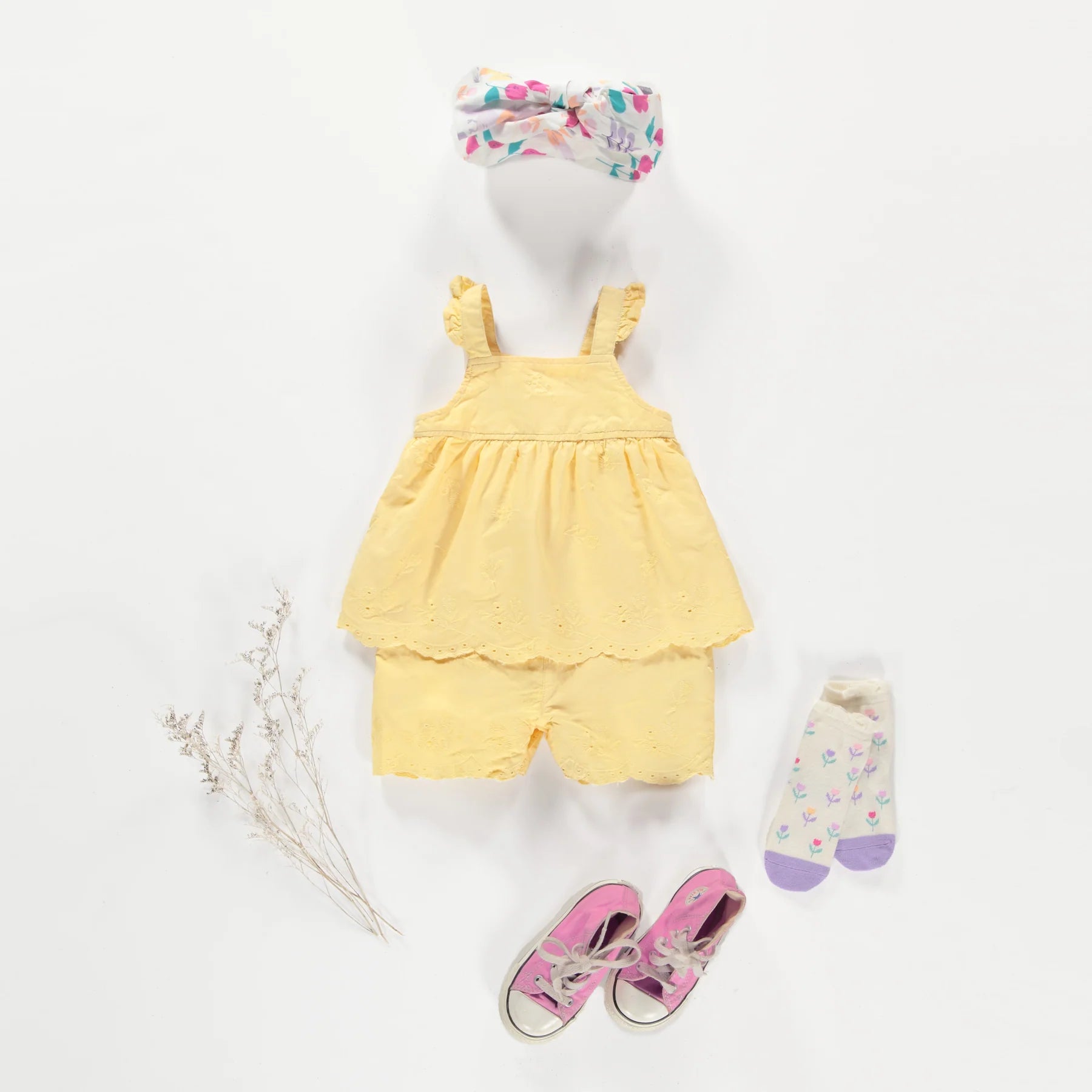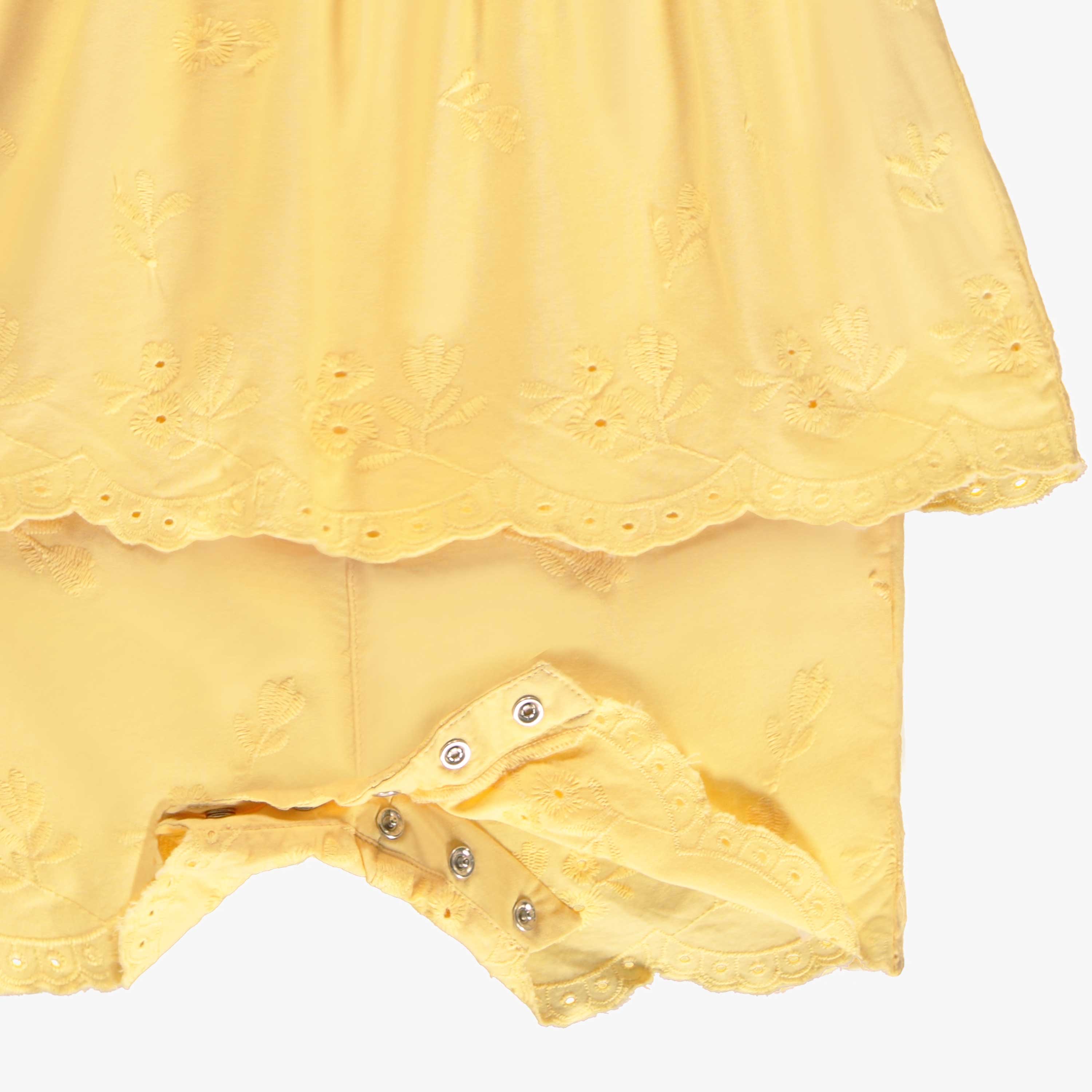Une pièce jaune en popeline avec broderies et volants, bébé