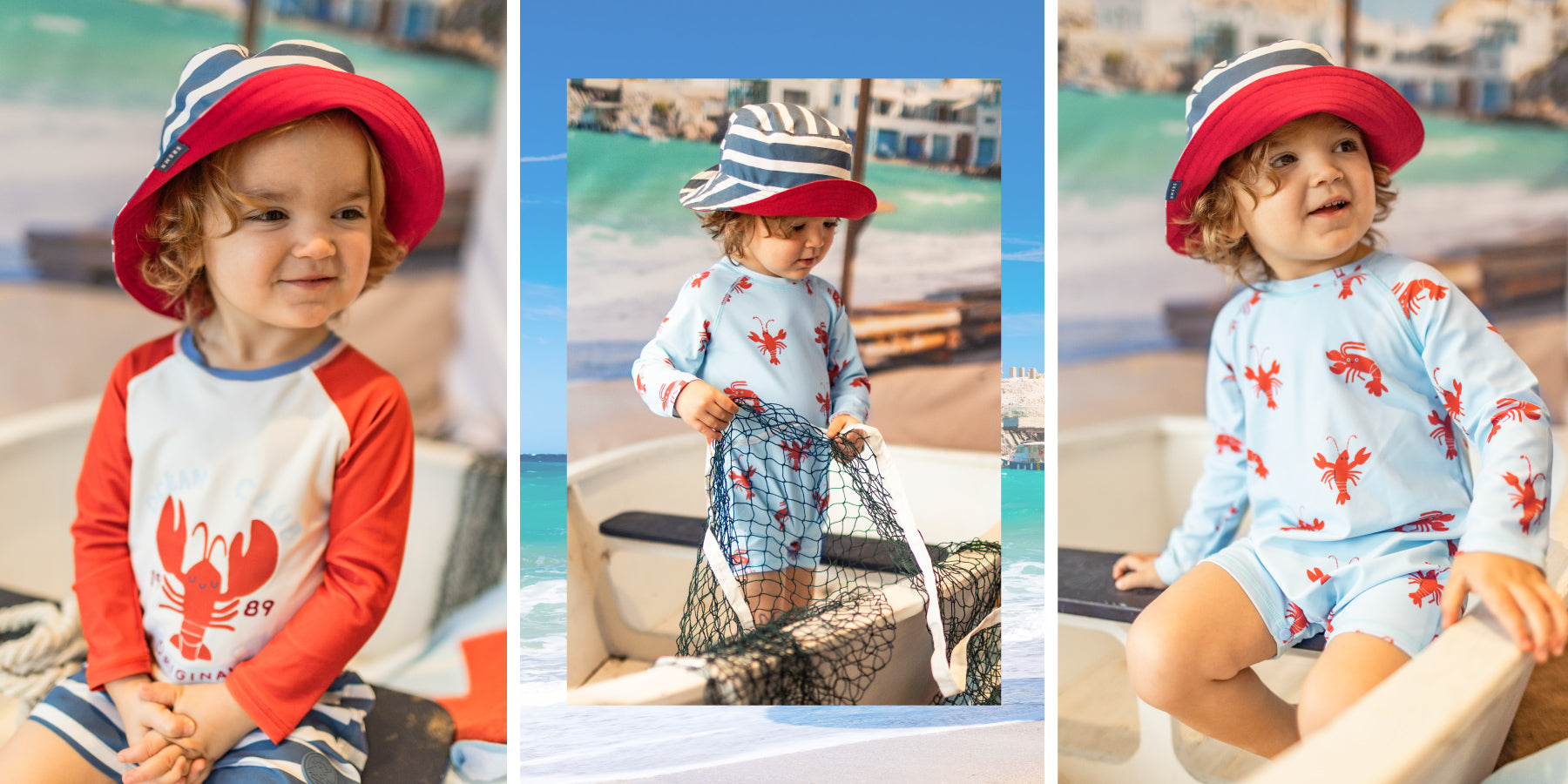 Chandail de bain rouge et crème avec homard, bébé