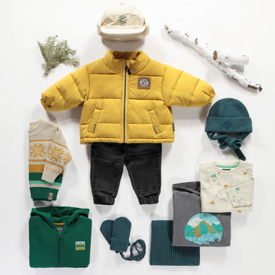 Notre collection de vêtements plein air pour bébé garçon propose des tissus techniques légers, confortables et durables.