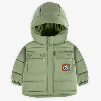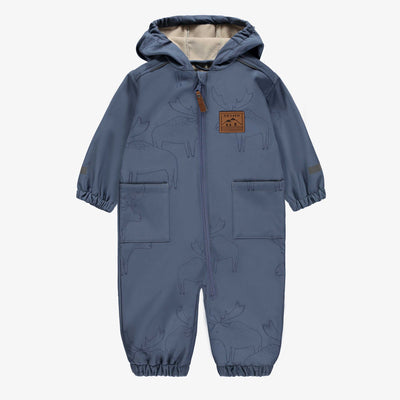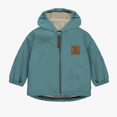 Manteau une pièce vert en coquille souple avec motifs de sapins, bébé