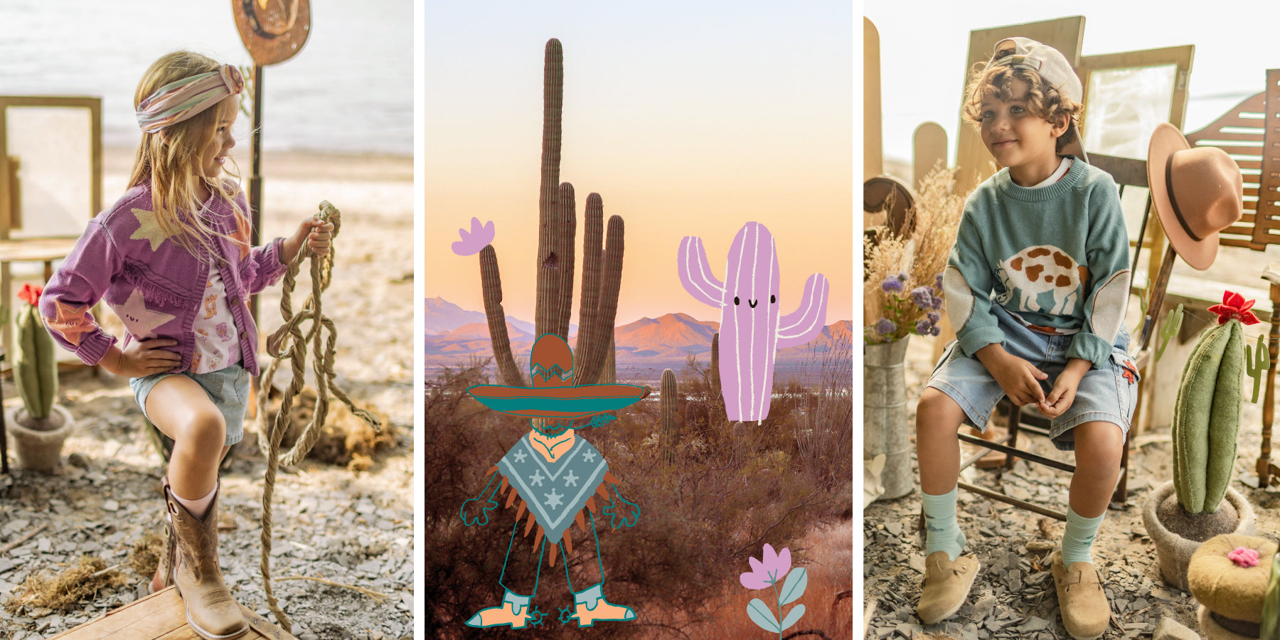 Une collection aux accents western, imaginée pour le confort de tous les jours. Des imprimés ludiques, une palette chaleureuse et des pièces simples à porter se combinent pour créer des looks pensés pour suivre les enfants dans chacune de leurs aventures quotidiennes.