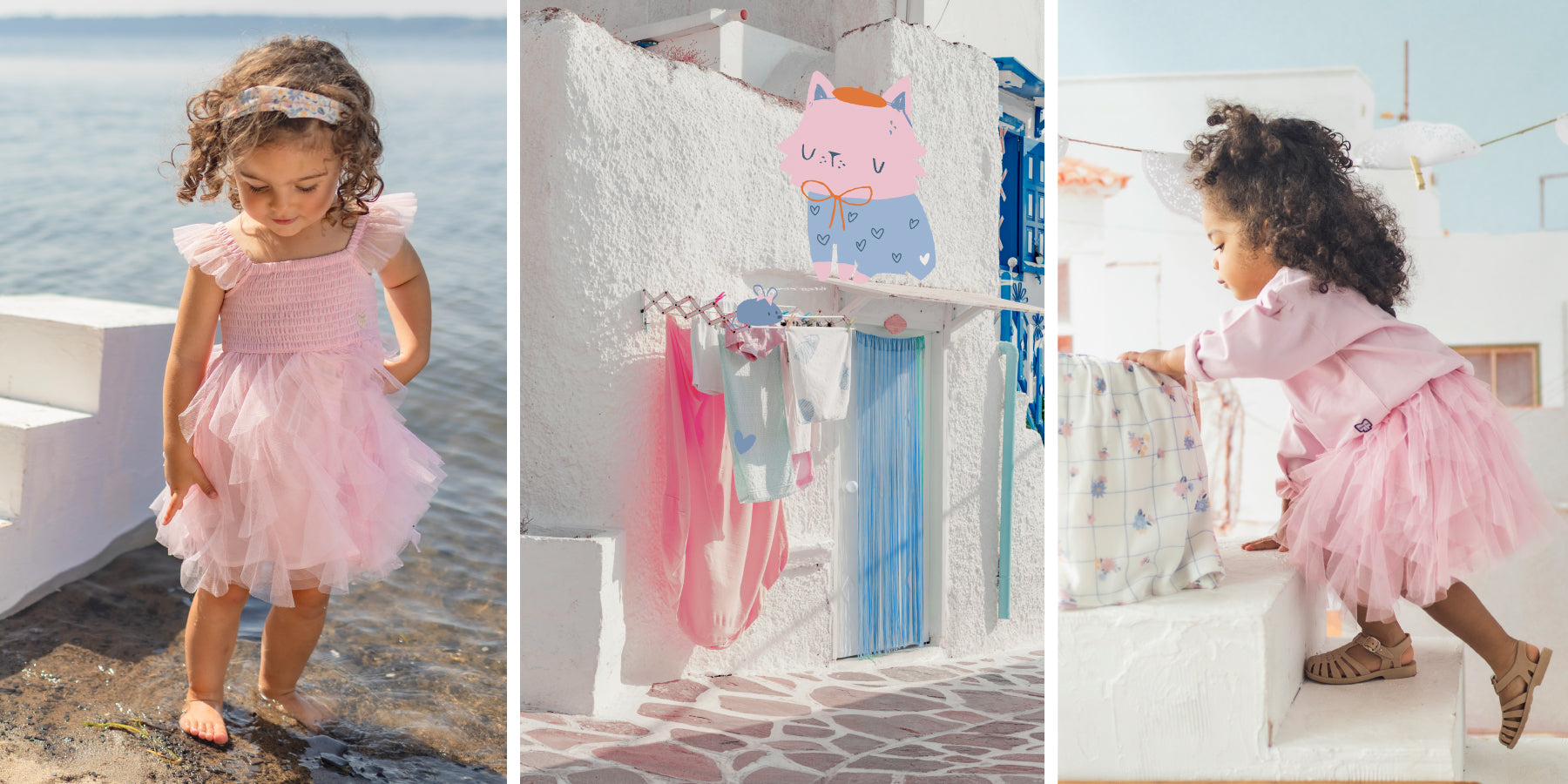 Délicate et lumineuse, cette collection fille met à l’honneur des robes élégantes, des motifs floraux et des chats adorables, dans une palette de roses tendres et de bleus doux. Les broderies raffinées et les matières légères ajoutent une touche de charme à chaque pièce.