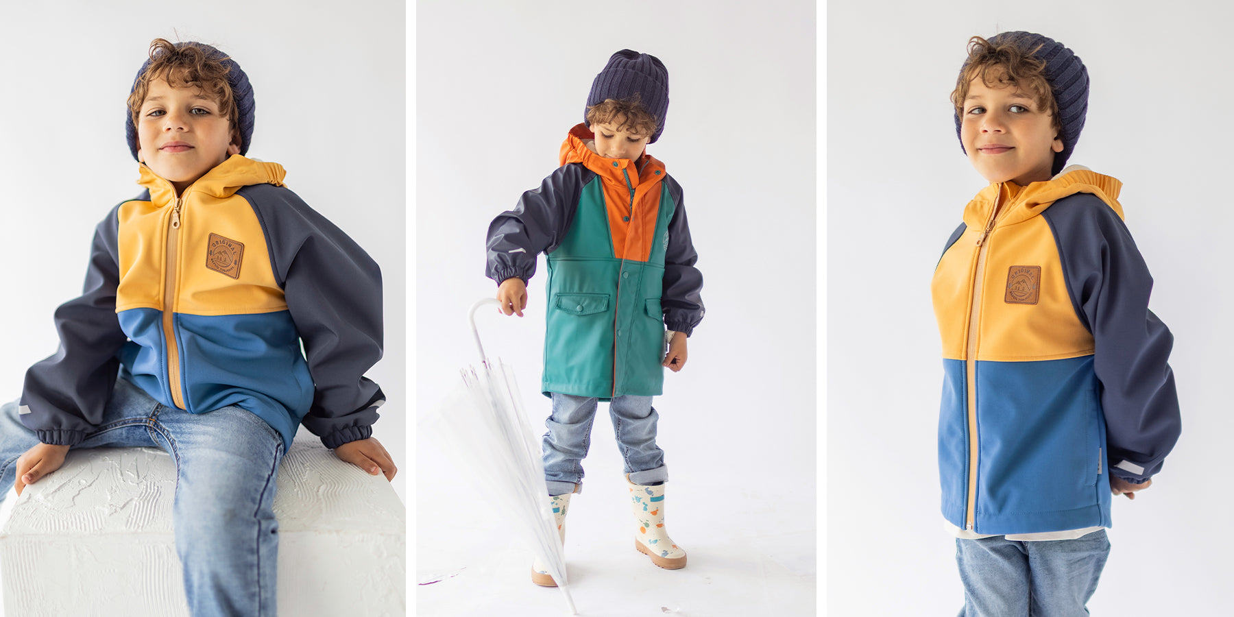 Manteau bleu et jaune en coquille souple, enfant