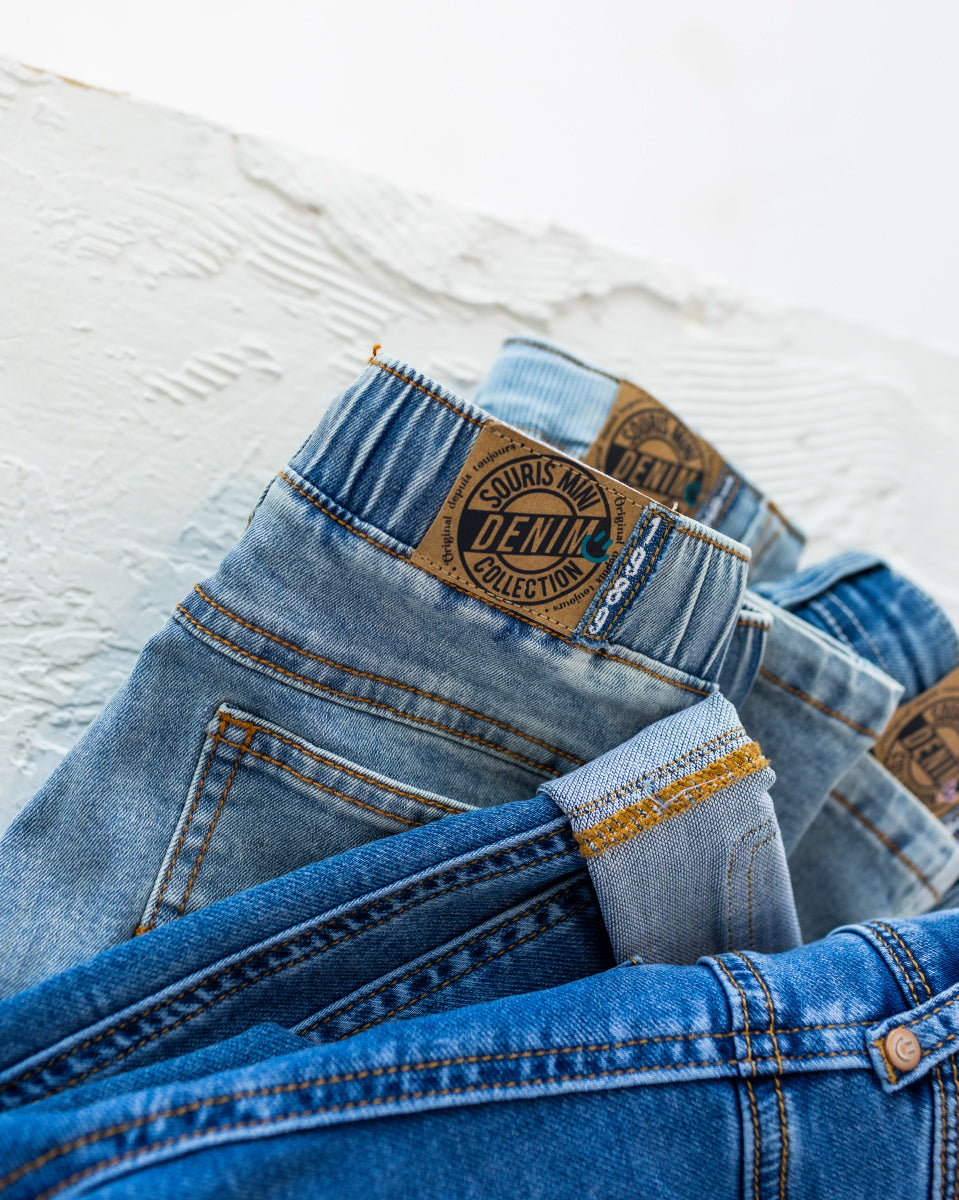 Pantalon évolutif en denim léger avec broderies, naissance