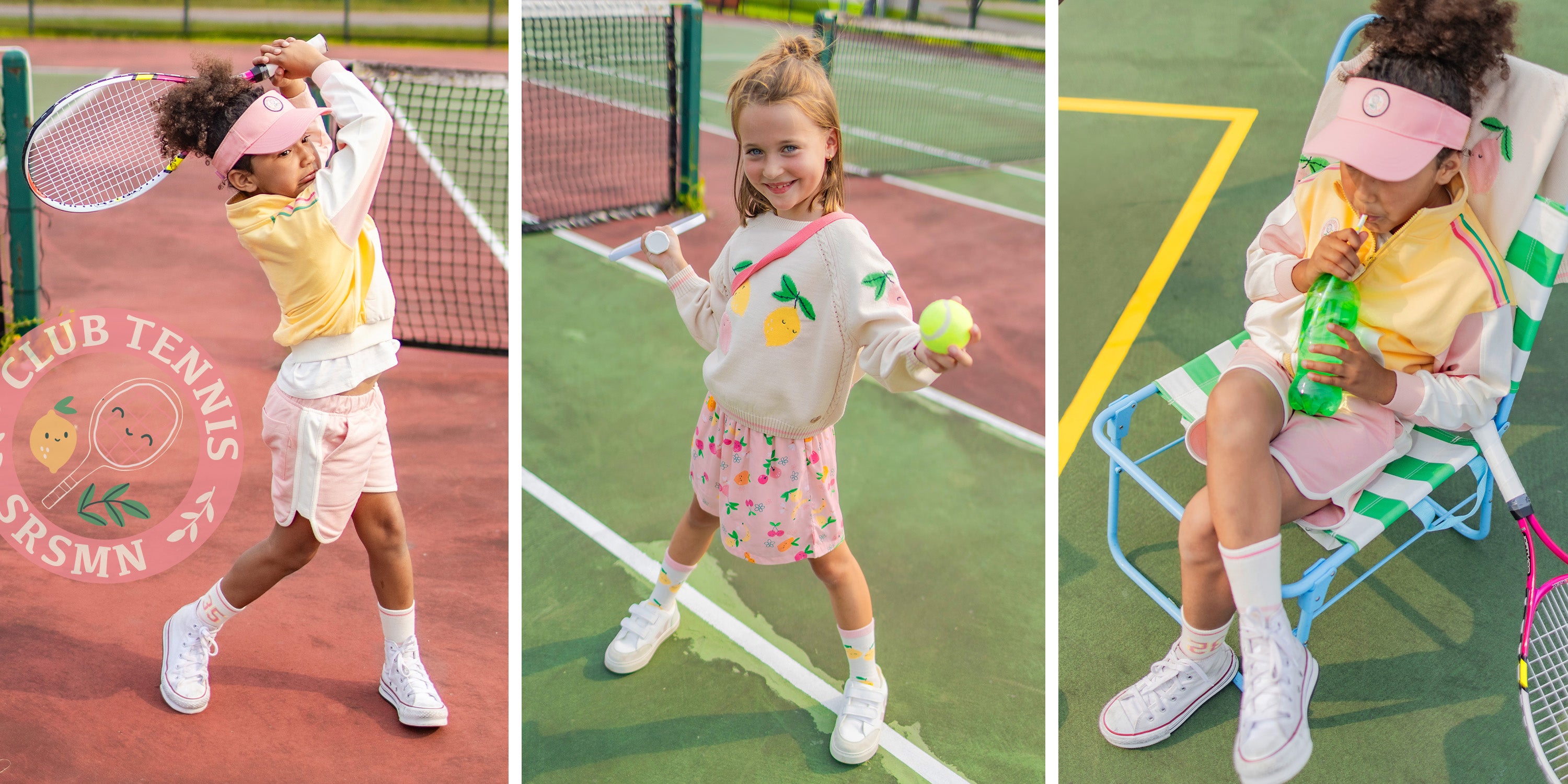 Découvrez des morceaux à la tendance athlétique, rehaussés d'imprimés fruités. De la viscose légère, des tricots féminins et une touche rétro attendent vos petites championnes.