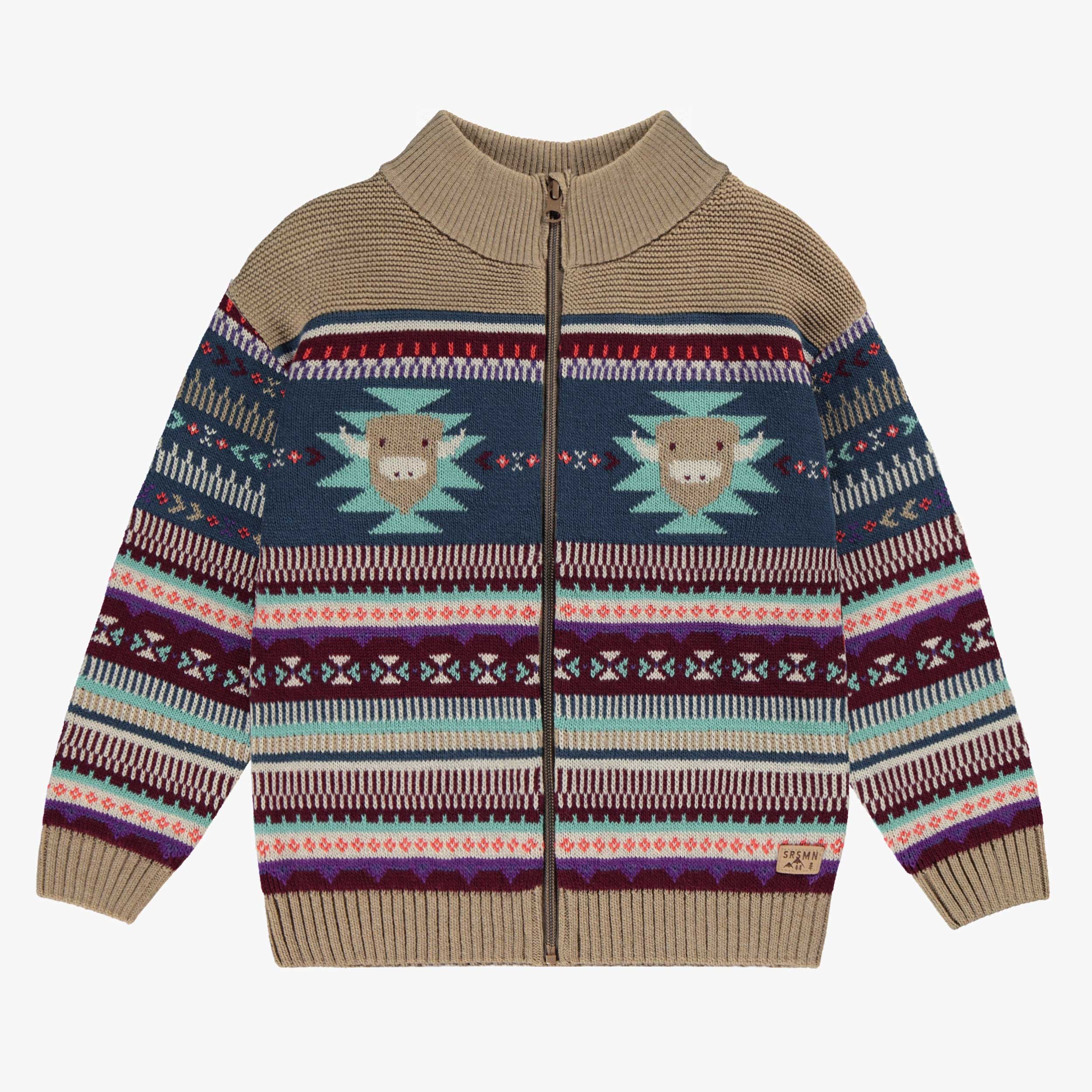 Chandail beige en tricot avec rayures colorées, enfant