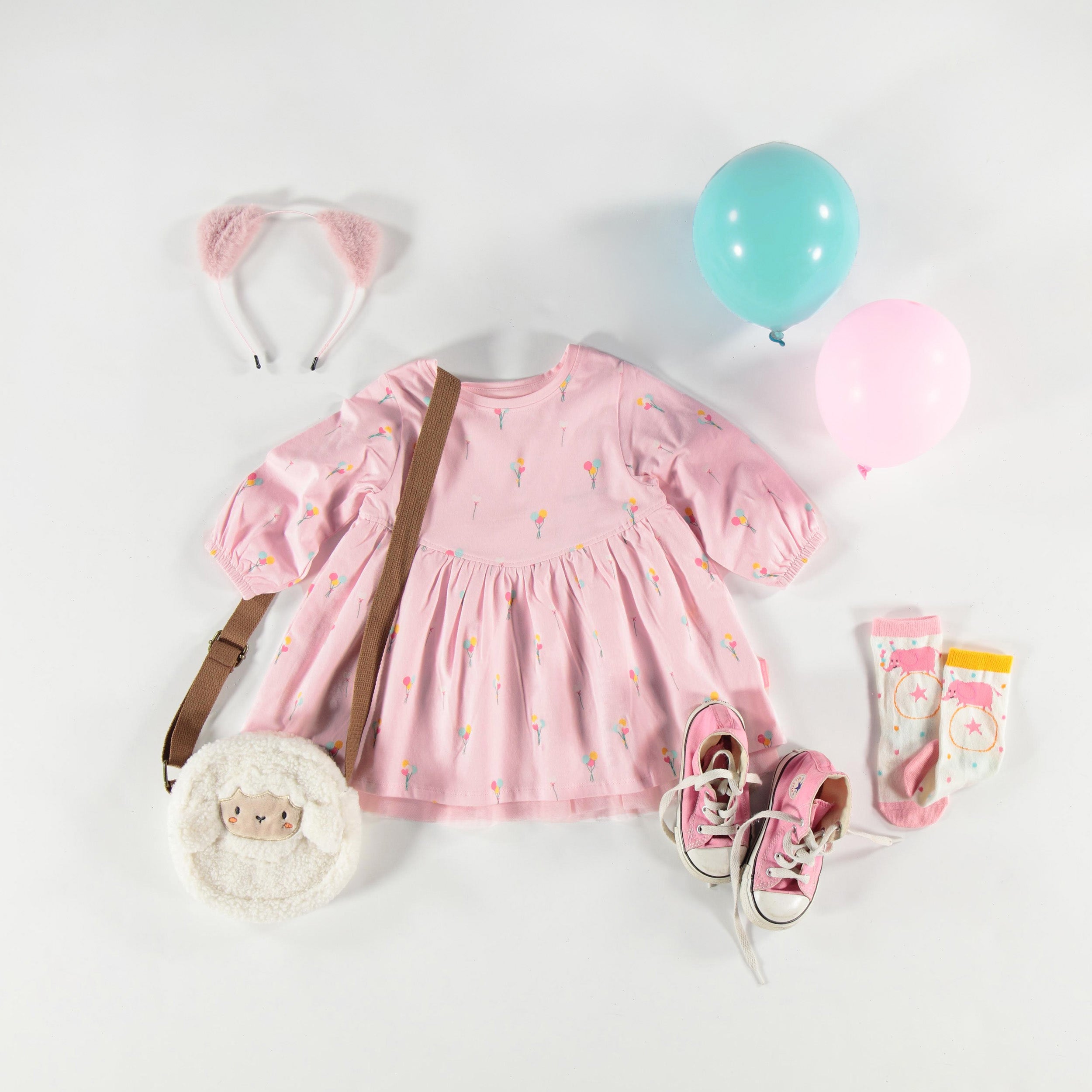Pink dress with balloon all over print, baby