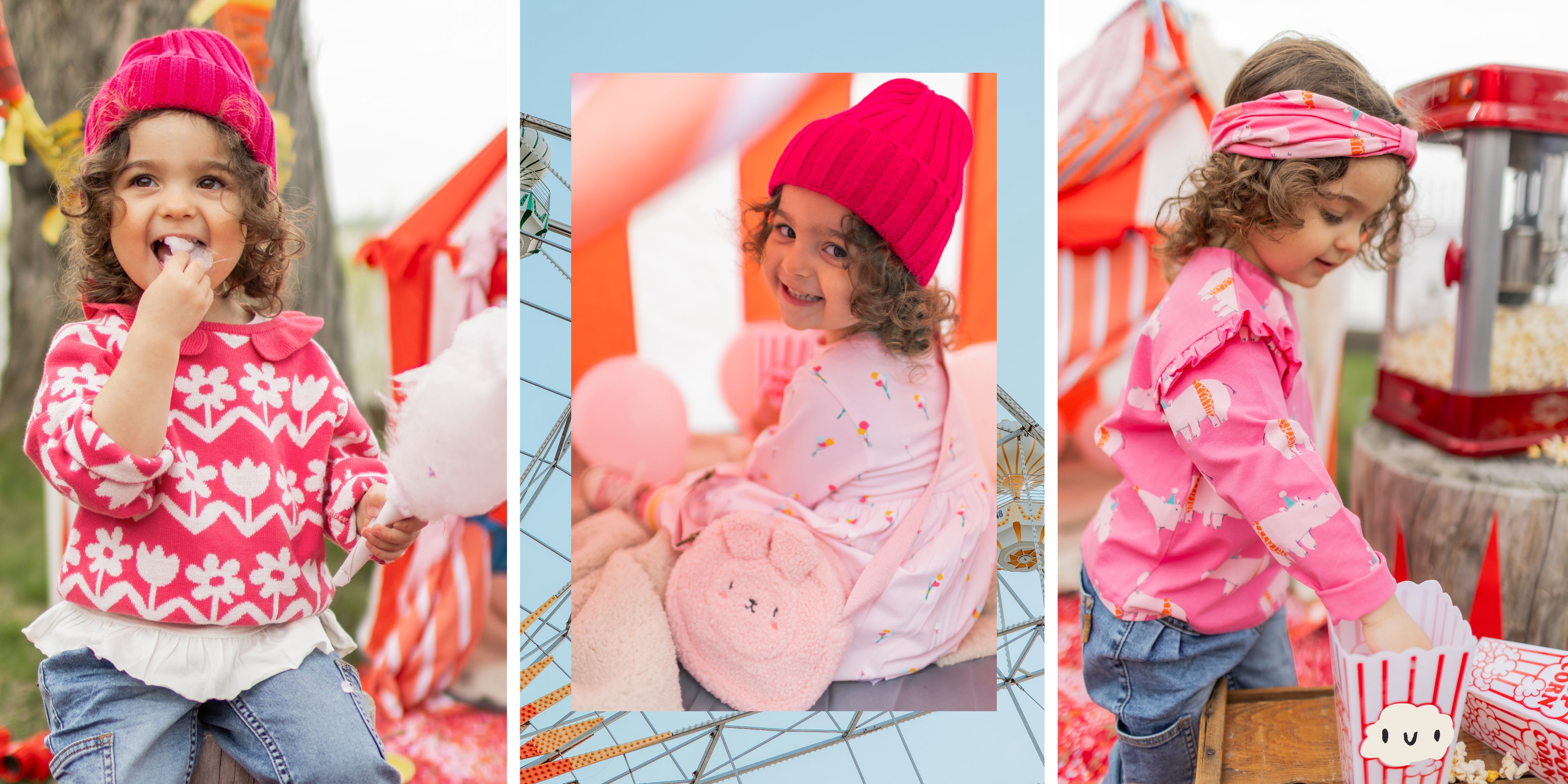 Let the show begin with this colorful and whimsical collection! Sparkling pink, funny hippos, and cute balloons come together for a festive and joyful look, straight from the magical world of the circus!
