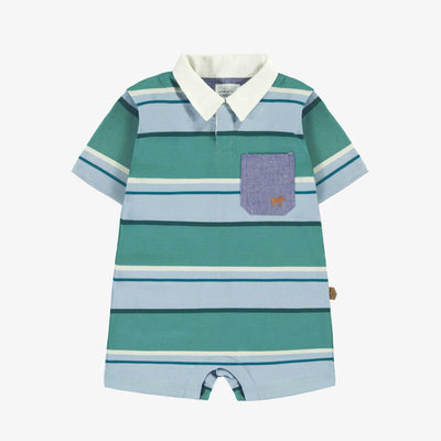 Turquoise, blue and white striped one piece in heavy jersey, baby