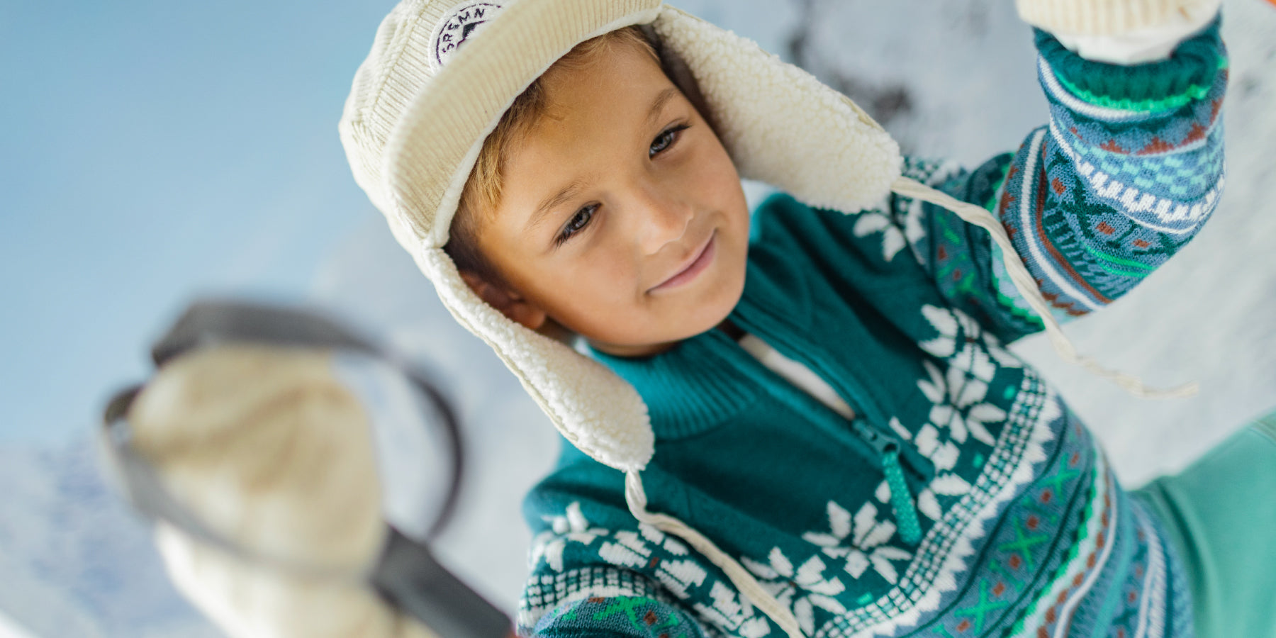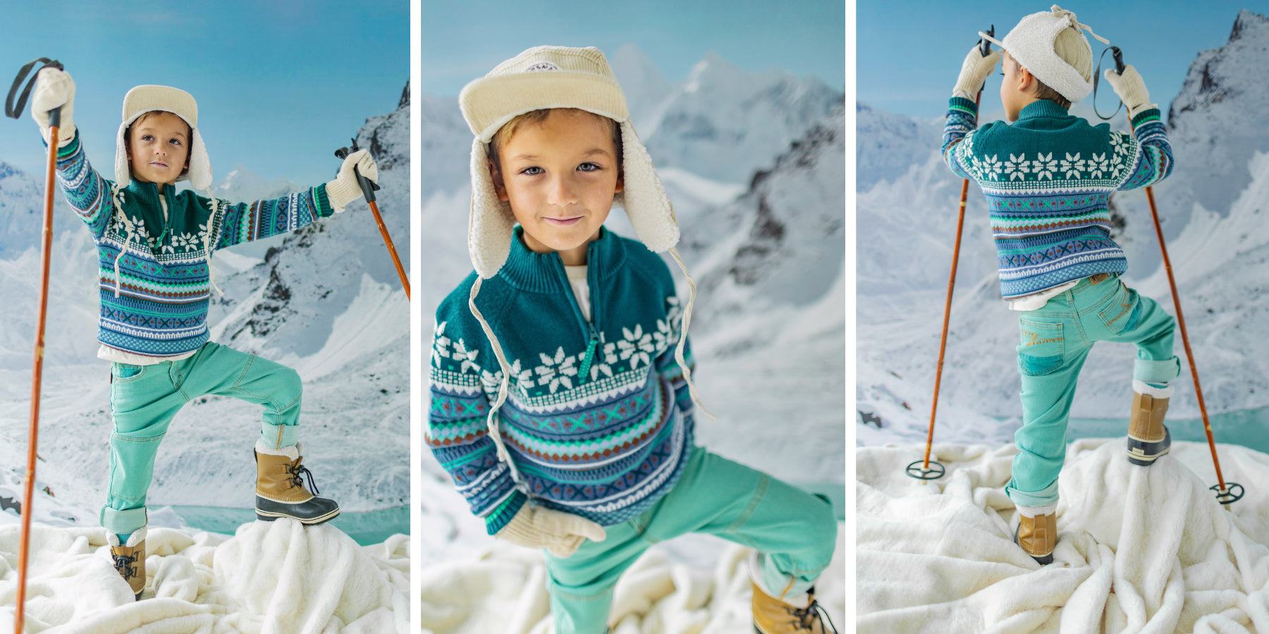 Fuzzy knits and Nordic jacquards in a palette inspired by the Great North: creamy tones, icy turquoise, and deep blue. Style, comfort, and warmth for your little adventurers!
