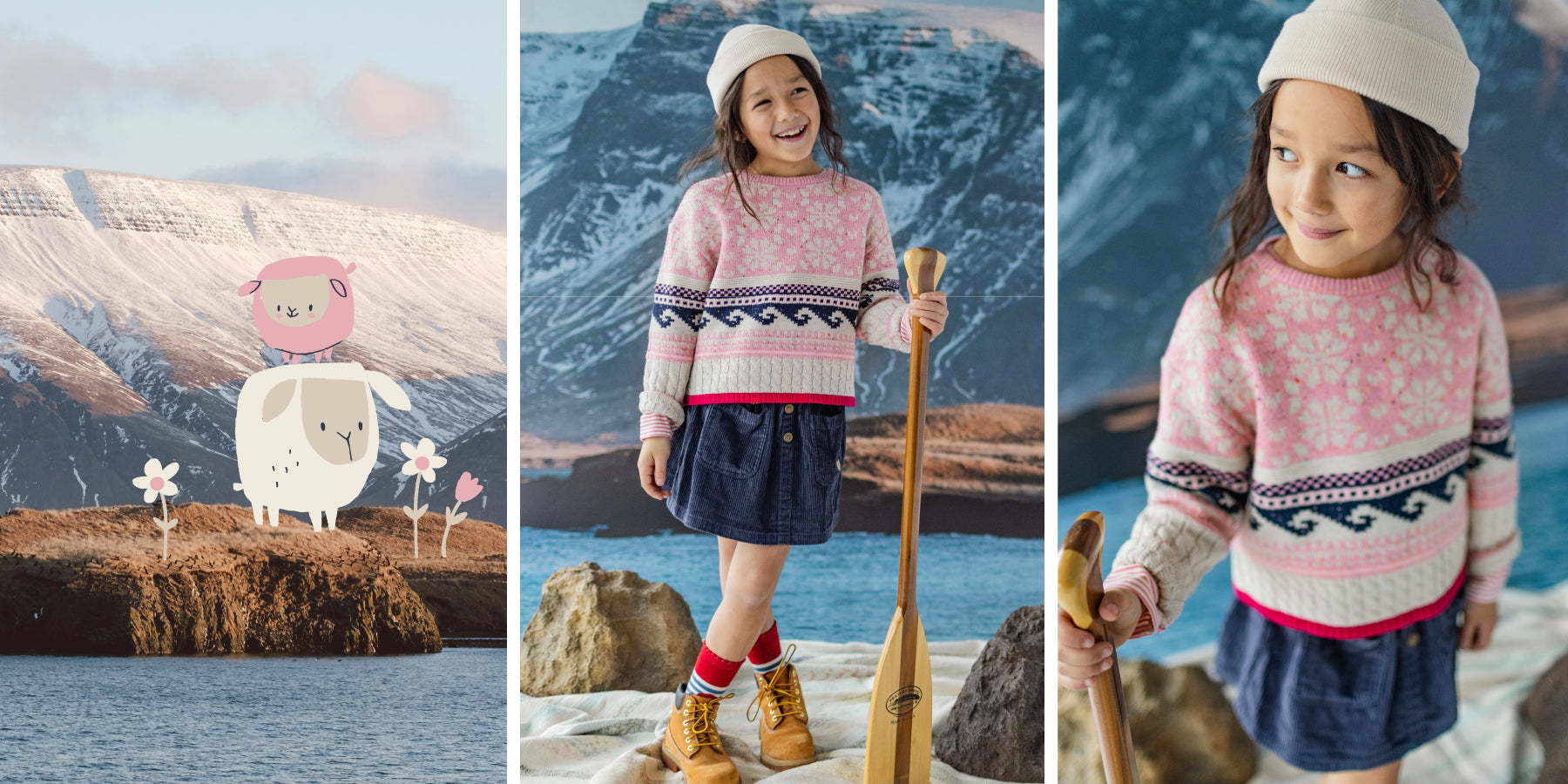 Soft knits, cozy corduroy, shades of blush pink and navy blue… each piece is designed to wrap your little ones in warmth and tenderness. Inspired by the Nordic fjords, this collection features lovely wave and sheep patterns for comforting and charming looks.