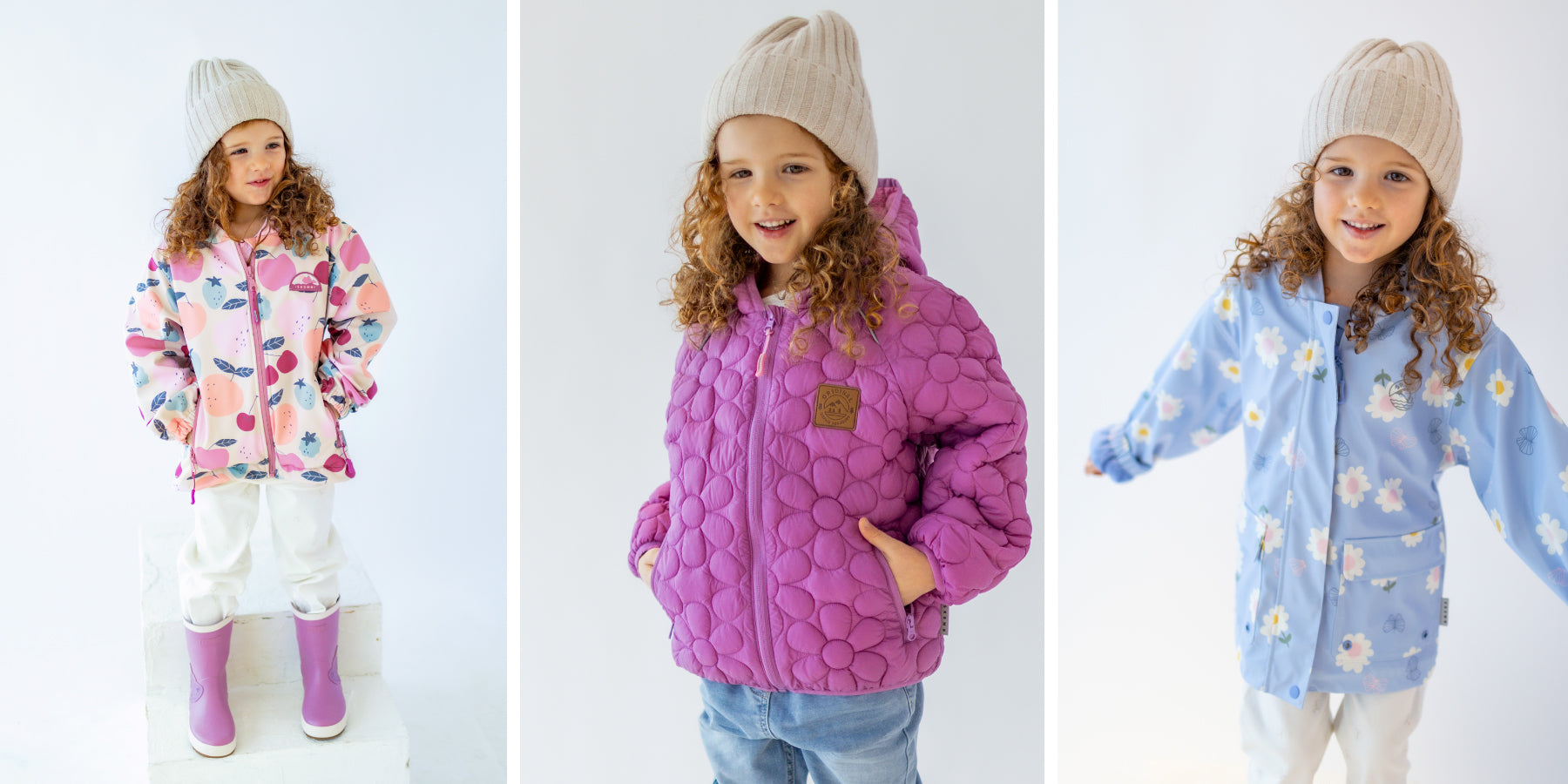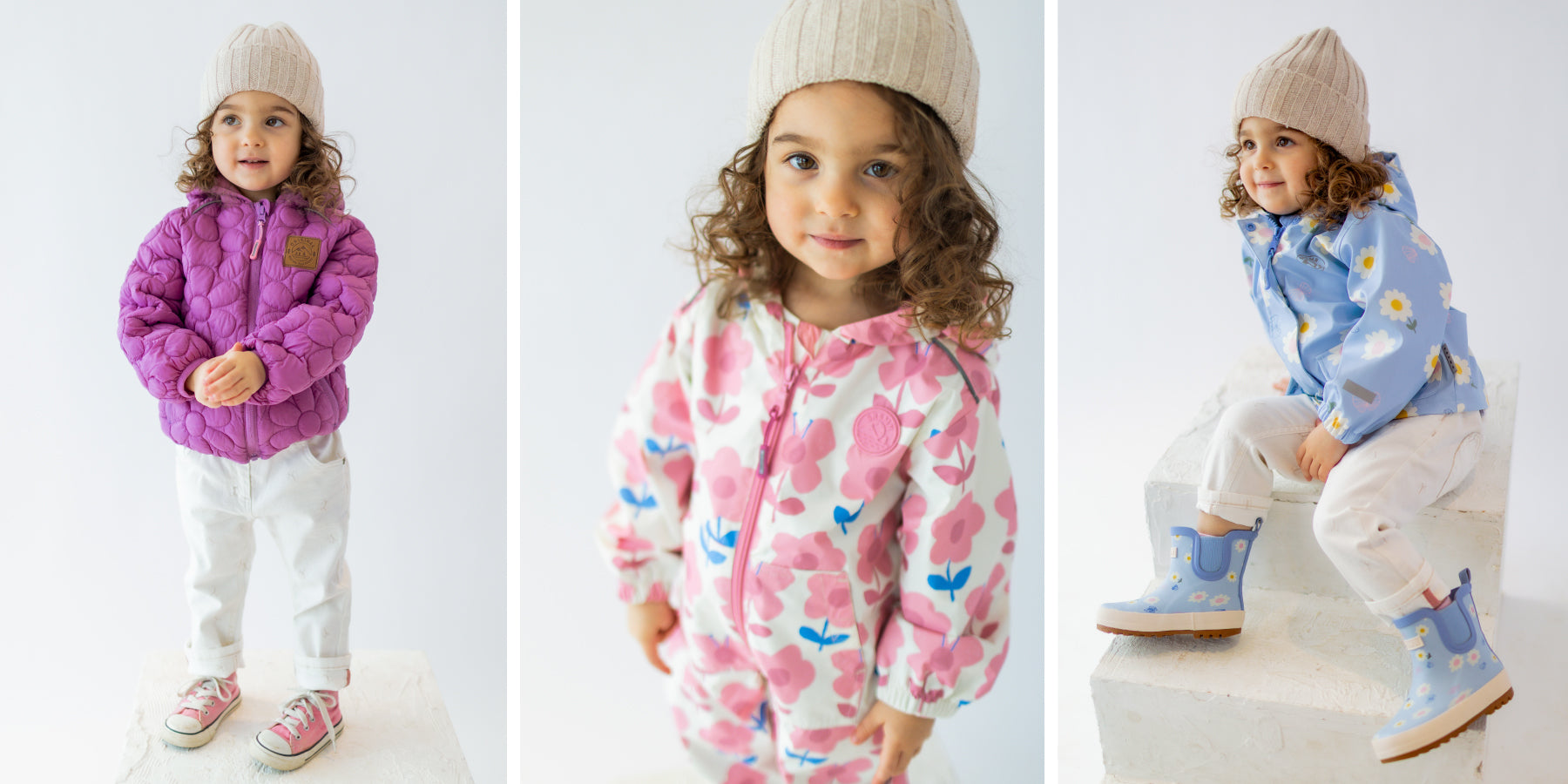 Our collection of outdoor clothing for baby girls features lightweight, comfortable, and durable technical fabrics.