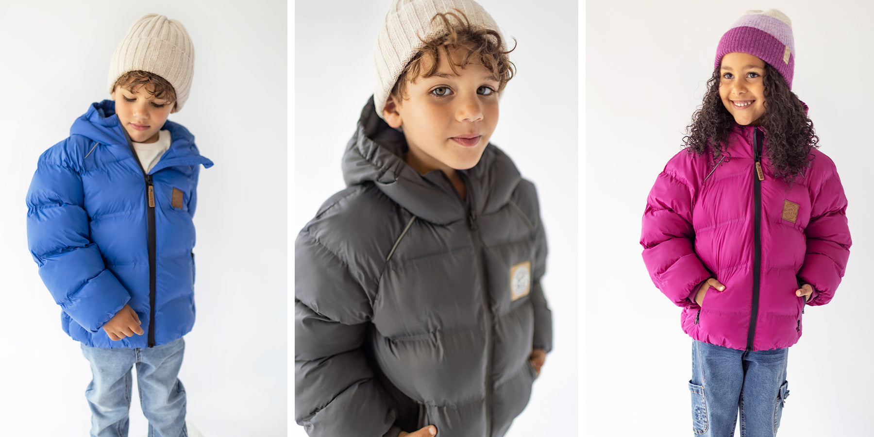 Blue puffer coat, child