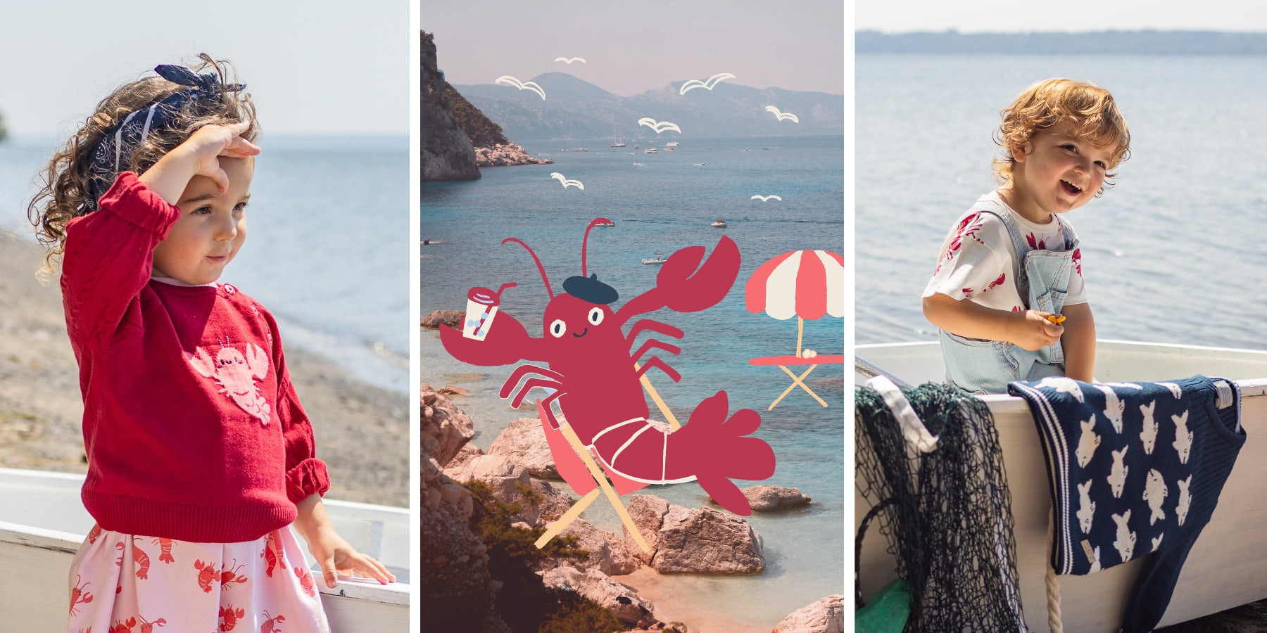 Red knit sweater with lobster print, child