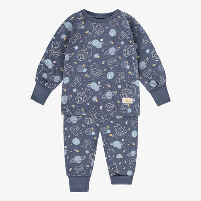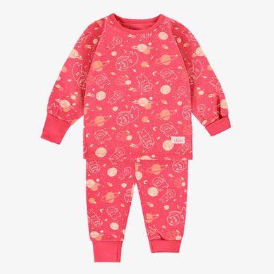 Pink two-piece pajamas with holiday all over print, baby
