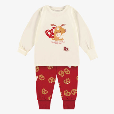 Two-piece cream pajamas with stripes and gingerbread motifs, baby