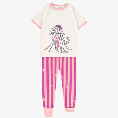 Pink two-piece pajamas with holiday all over print, child