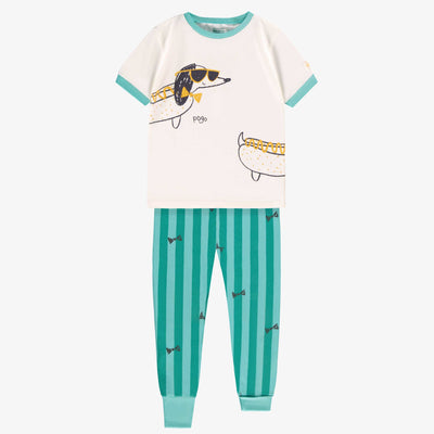 Cream two-piece pajama with stripes and gingerbread print, child