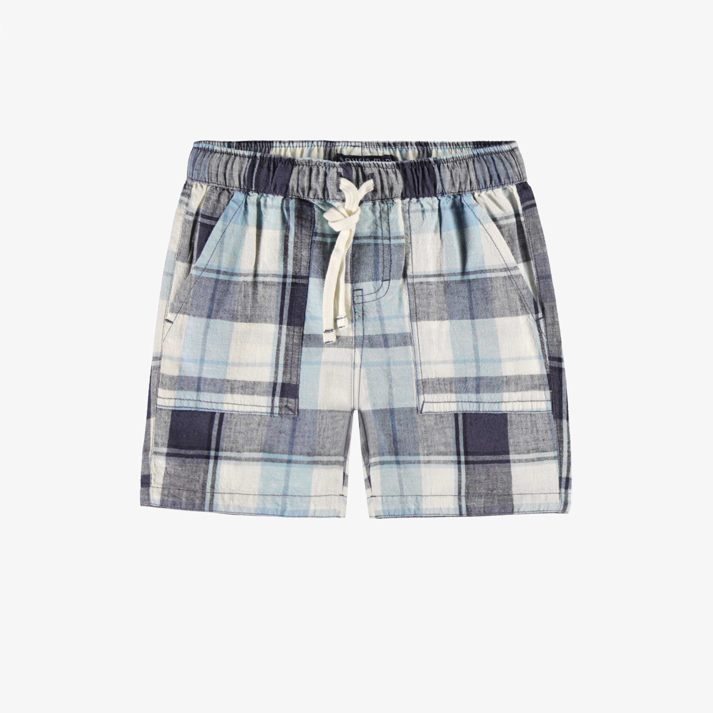 Blue and cream plaid bermuda shorts in poplin and linen, child