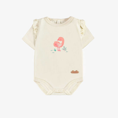 Cream bodysuit in stretch jersey with a flamingo, newborn