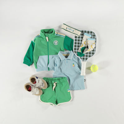 Discover athletic-inspired pieces enhanced with fruity prints. Retro sets, fun patterns, and a touch of preppy style await your little champions.