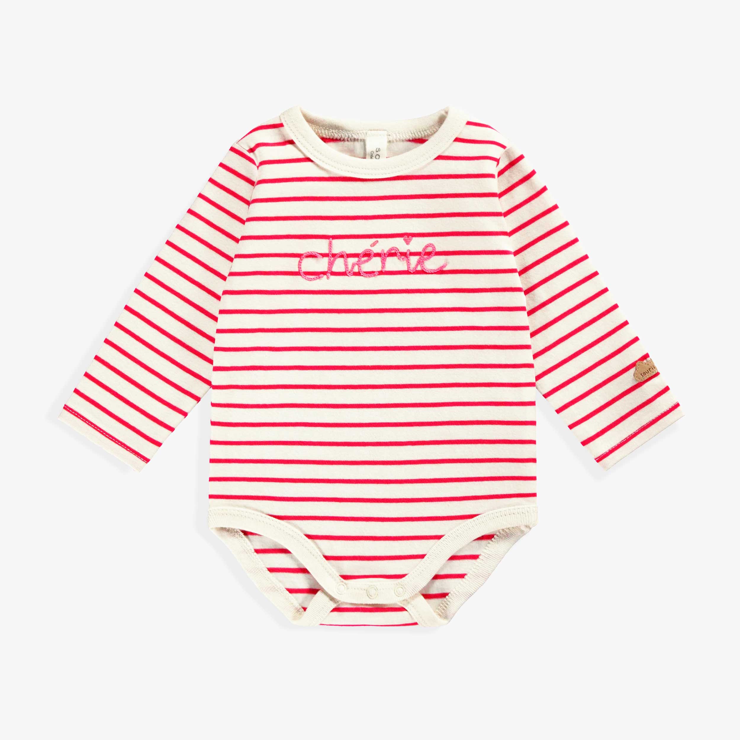 Cream bodysuit with pink stripes, newborn