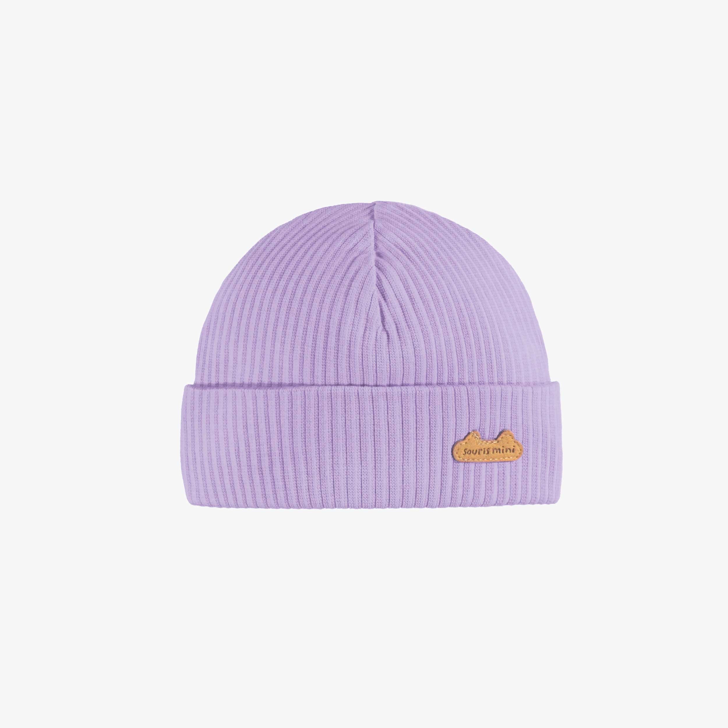 Purple rib-knit beanie, newborn
