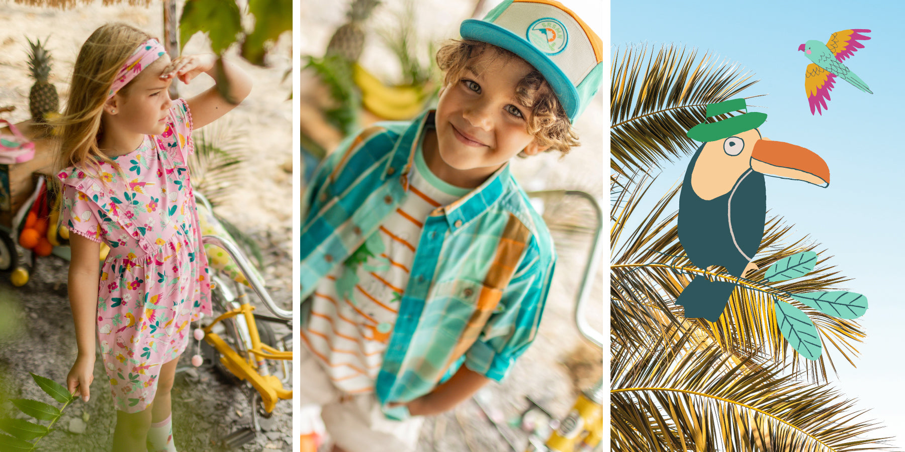 A heat wave is rolling in! Bright colors, jungle-inspired prints and lightweight fabrics come together to create comfortable, energetic outfits. Whether they’re playing, exploring or simply enjoying sunny days, every piece is designed to follow kids on all their adventures.