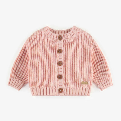 -50%Cardigan mauve en tricot torsadé, bébéZoom détails du cardigan mauve en tricot torsadé, bébé