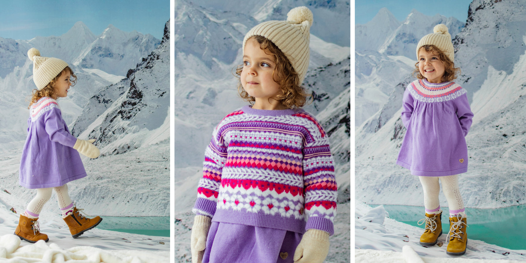 Cozy dresses, fuzzy knits, and Nordic details wrapped in shades of frosted pink and boreal purple. A soft and colorful world where style, comfort, and warmth come together!
