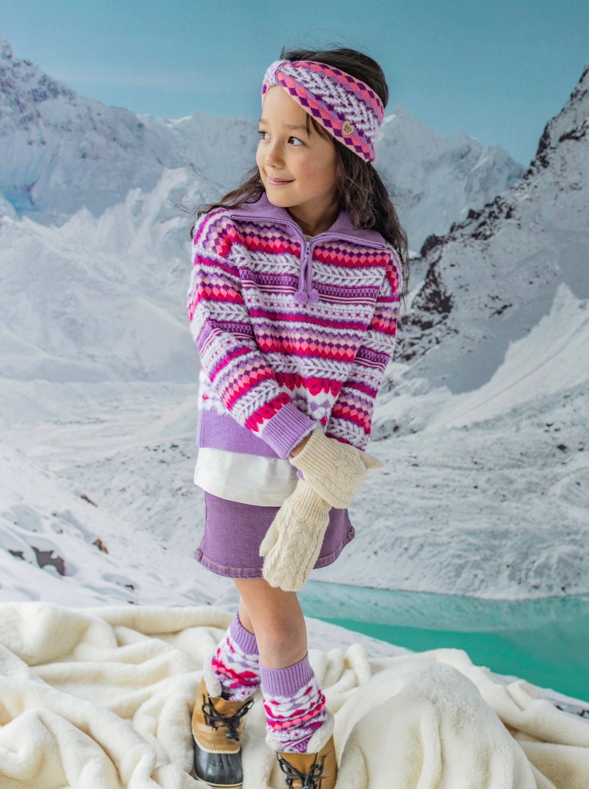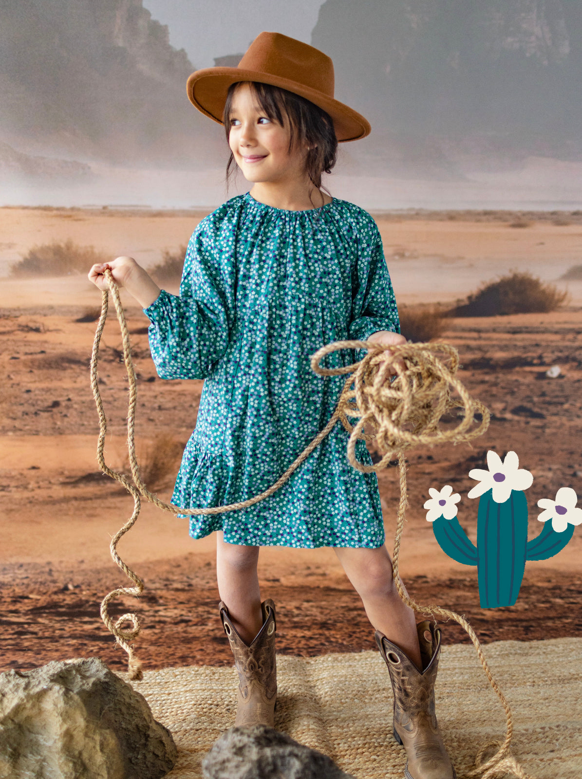 Horse prints, cactus patterns, cotton lace, and Navajo-inspired jacquards come together for a fresh take on western style. All in lovely shades of purple and turquoise, your little one will love it!