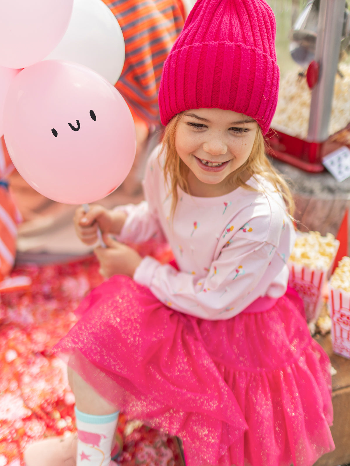 Let the show begin with this colorful and whimsical collection! Sparkling pink, twirly tutu skirt, playful animals, and cute balloons come together for a festive and joyful look, straight from the magical world of the circus!