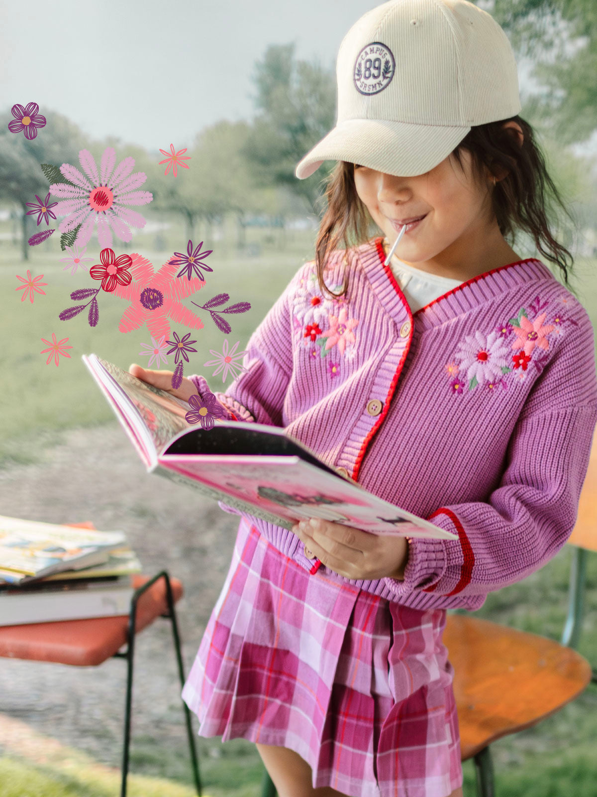 From plaid skirts and dresses to elegant stripes and refined embroidery, each piece is designed to blend comfort and charm. All in soft purple tones for a feminine and adorable style.