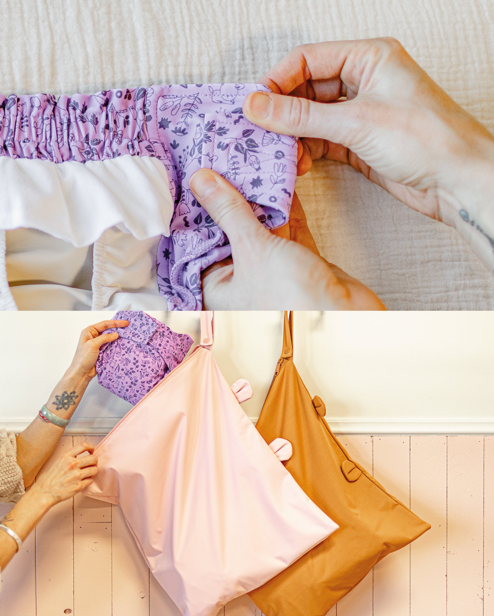 Your reusable diapers, inserts and storage bags can be added together for the next wash.