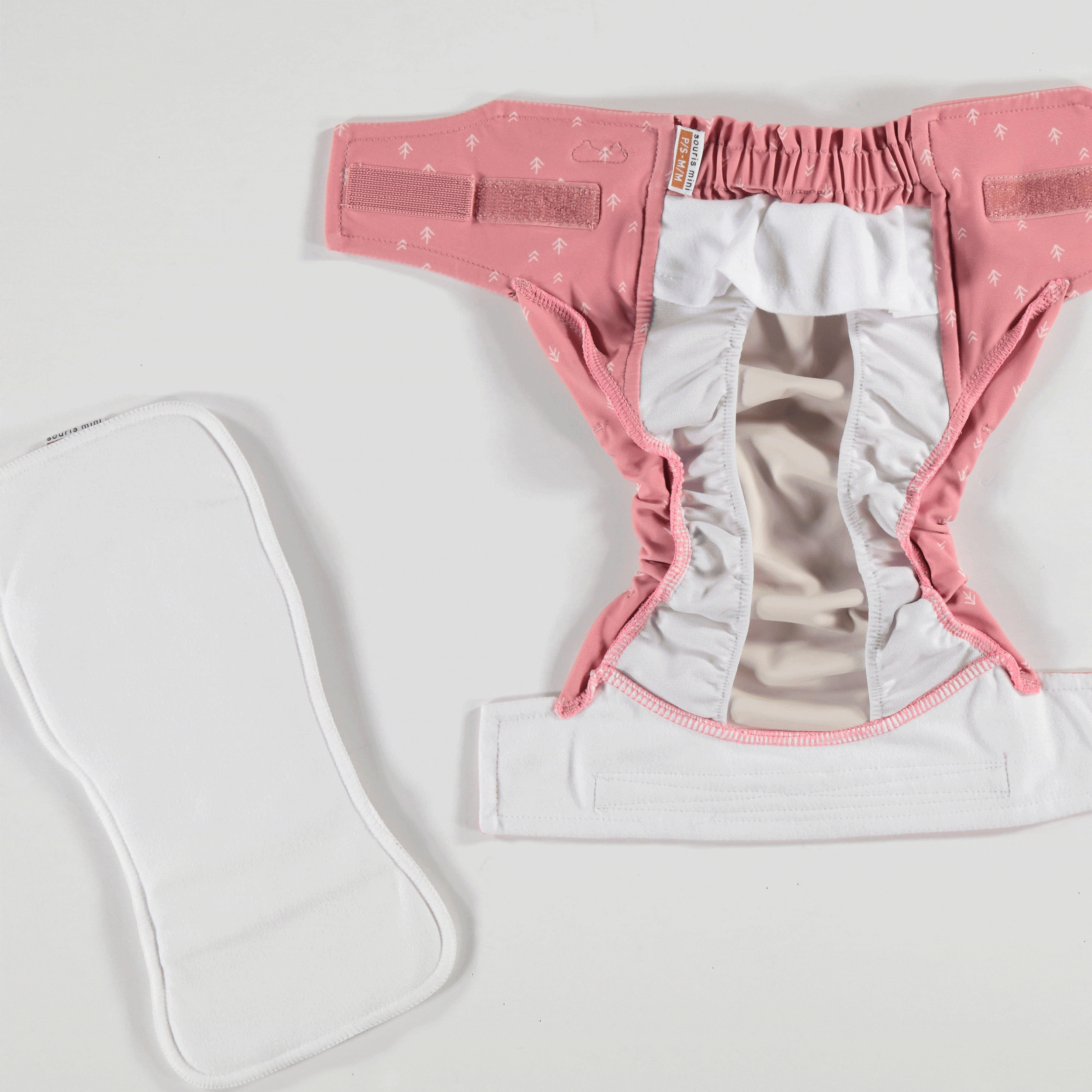 Our innovative, ultra-practical concept makes it easy to place the inserts. The Souris Mini reusable diaper is designed to be handled as little as possible, something never seen before in a reusable diaper. The diaper and insert separate automatically in the wash.
