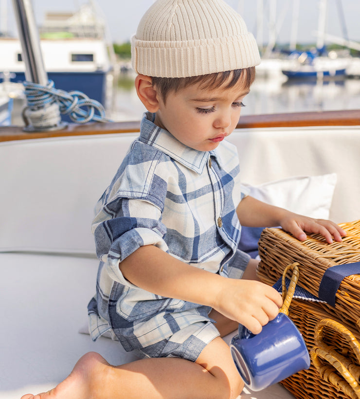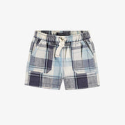 Blue and cream plaid bermuda shorts in poplin and linen, baby