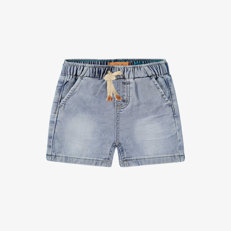 Pale blue denim Bermuda shorts with an elastic waistband and an adjustable drawstring for maximum comfort. Features two front pockets and two back pockets for a classic look. Made from soft denim in a regular fit.