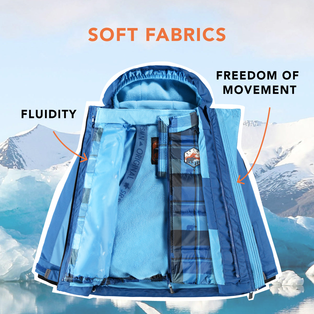 Blue, plaid, and black 3-in-1 snowsuit, child