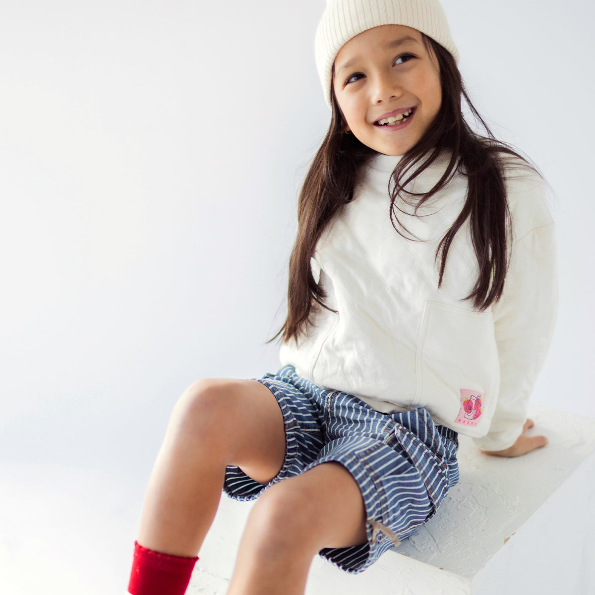 Blue and white striped railroad denim bermuda shorts, child
