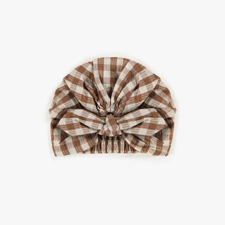 Cream and brown plaid hat in seersucker, baby