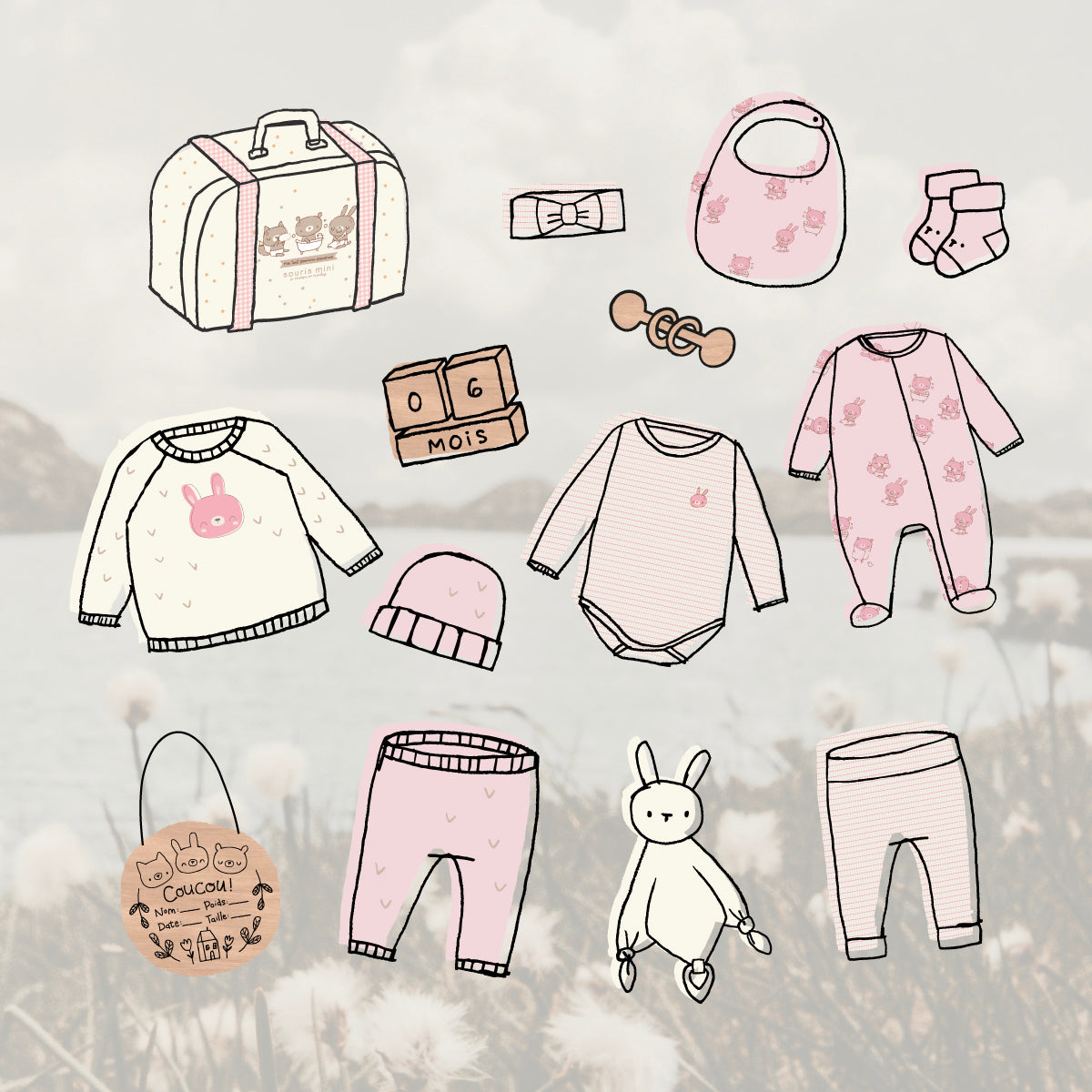 A suitcase filled with little wonders to celebrate baby’s arrival. A gift that is sure to be a joy to give and to receive!