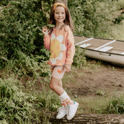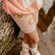 Short legging pink with flowers in knitwear. A soft and breathable fabric. This legging is totally original with its pattern and texture. In addition to being comfortable with its stretch ribbed mesh waist.Goes very well with the orange sweater or even the loose pink t-shirt.-Soft and comfortable fabric-Waist in ribbed knit
