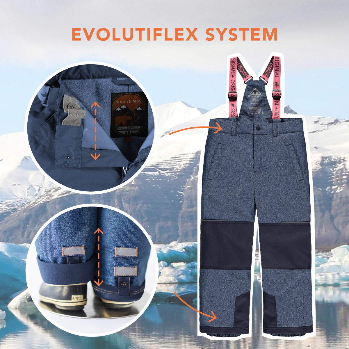 With our EVOLUTIFLEX system, your snowsuit will last longer! The sleeve and leg hems can be extended for a better, longer-lasting fit.