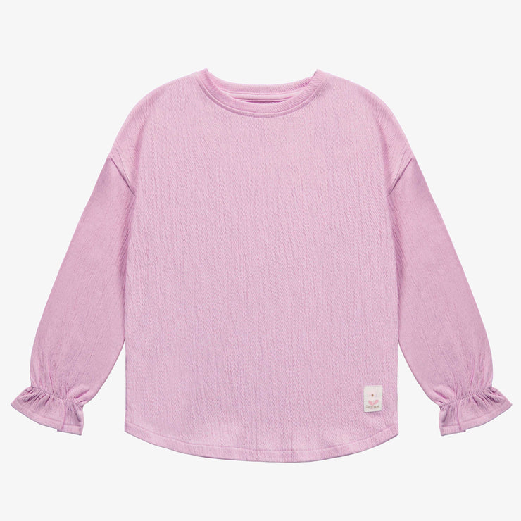 Lavender long sleeves t-shirt with fitted wrists in crinkle jersey, child