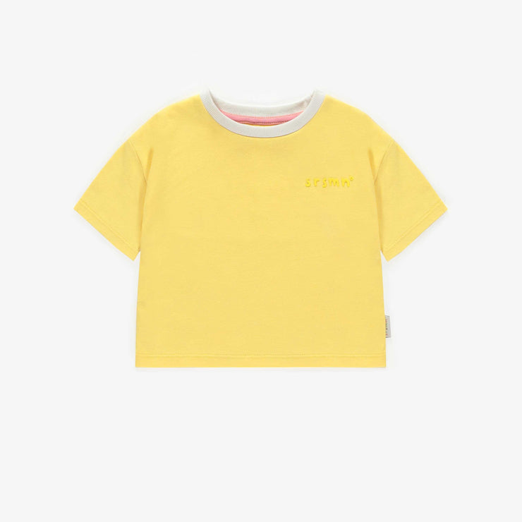 Short sleeved yellow t-shirt with round collar of a different color and straight cut made in 100% cotton jersey. The Souris Mini logo (SRSMN) is at the front with a minimalist tone-on-tone effect.An indispensable that goes with everything. As much as denim pants or colorful shorts.-Straight cut-Drop sleeves-SRSMN logo at front