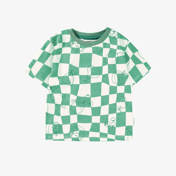 Green and cream checked and patterned T-shirt, baby