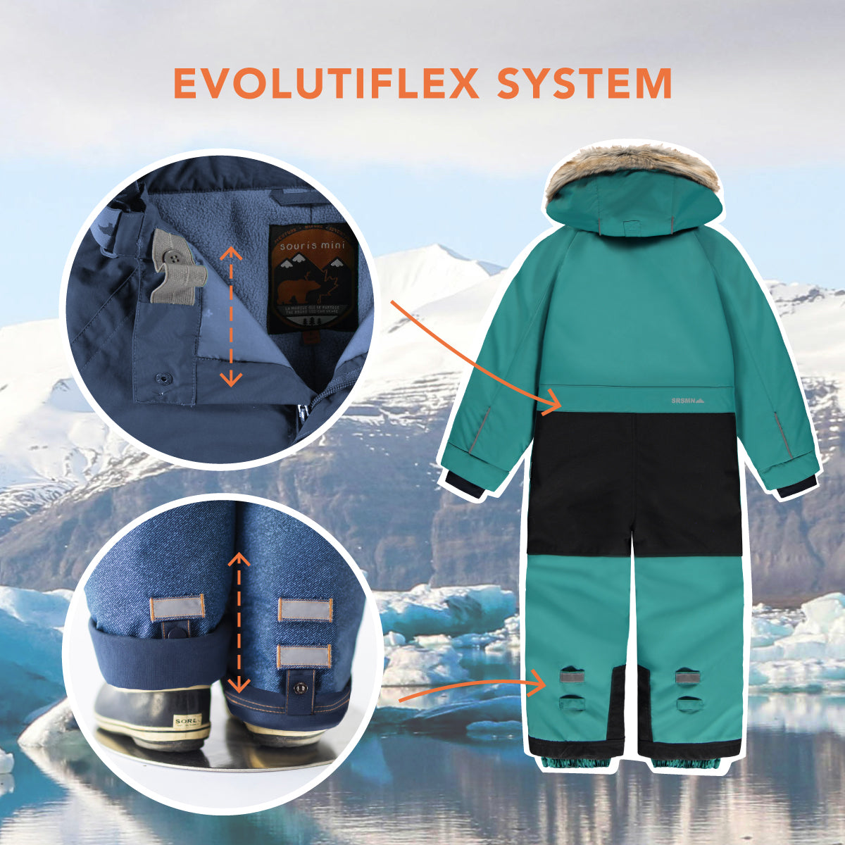 With our EVOLUTIFLEX system, your snowsuit will last longer! The sleeve and leg hems can be extended for a better, longer-lasting fit.